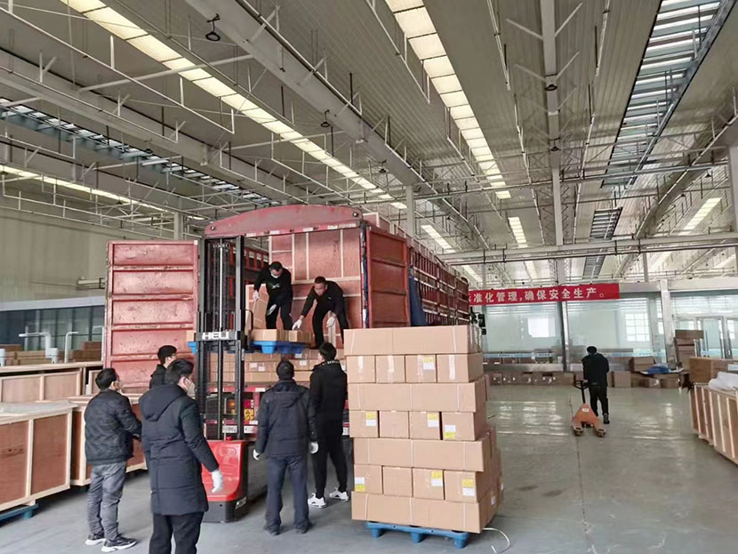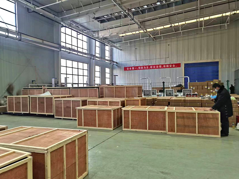 每一台体检机都由独立大型木质包装箱严格密封,以此保证运输过程中设备完好,顺利抵达客户端。昨天,工人们正在加班装车搬运中....